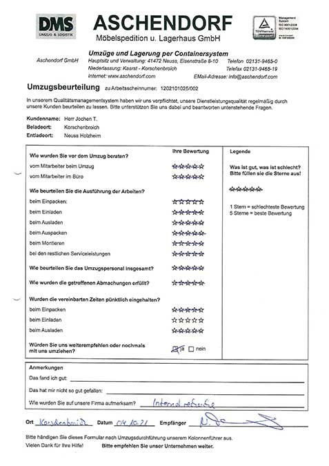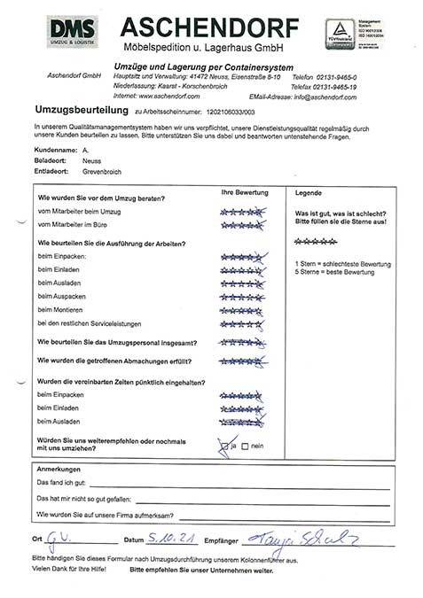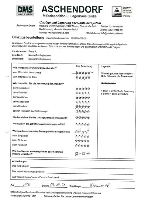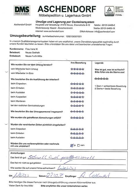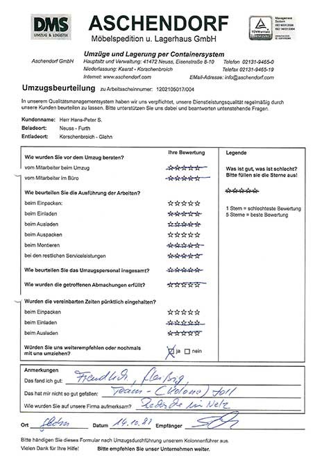 Wie beurteilen Sie das Umzugspersonal insgesamt?