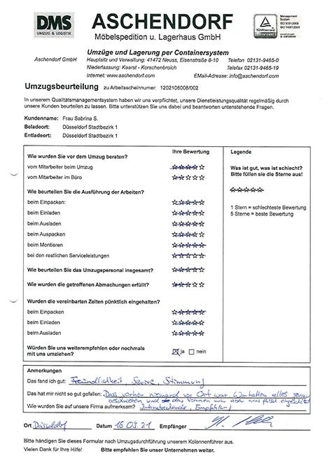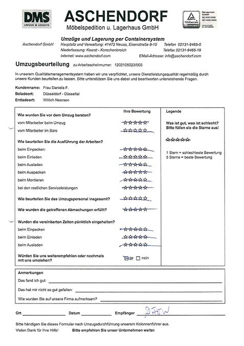 DüsseldorfGesamtwertung des Kunden