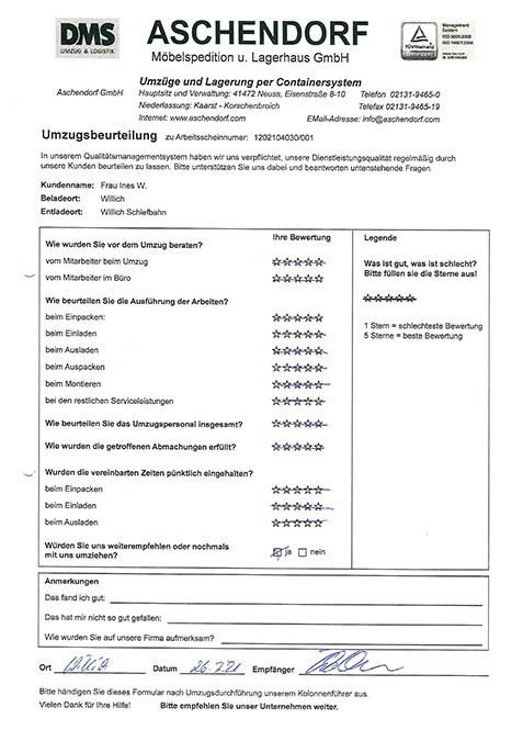 Wie beurteilen Sie das Umzugspersonal insgesamt?