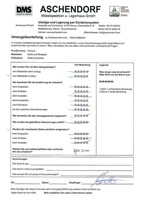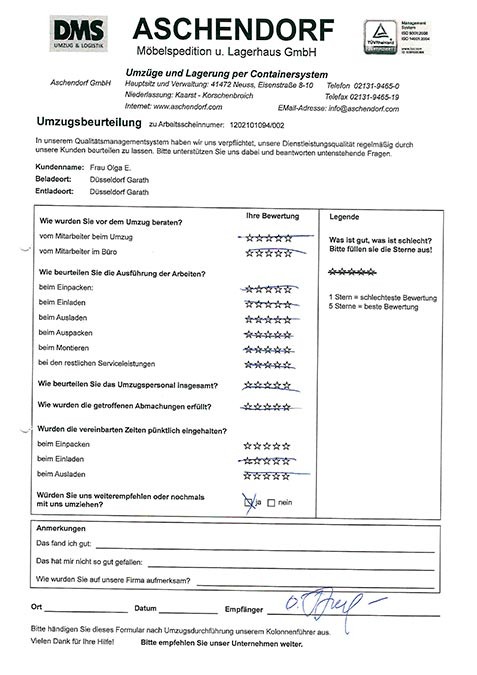 DüsseldorfGesamtwertung des Kunden
