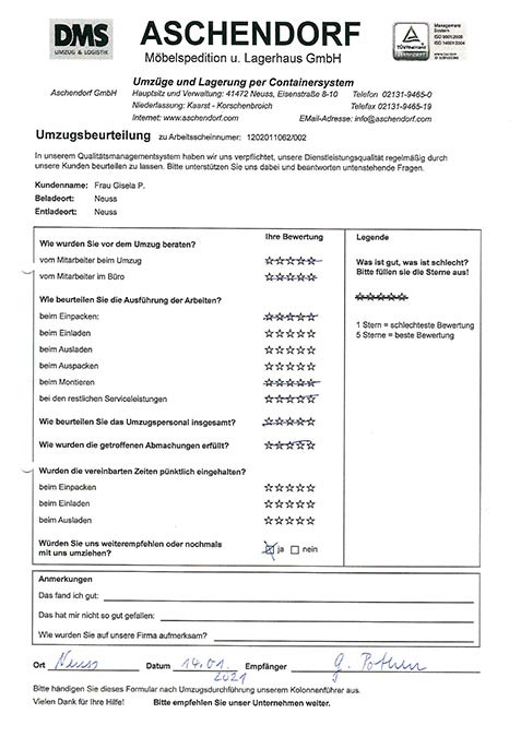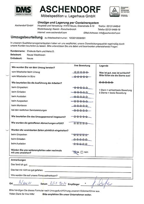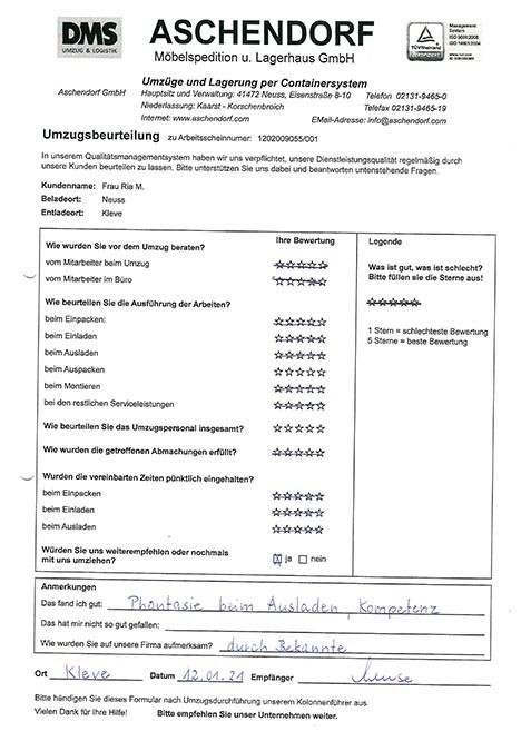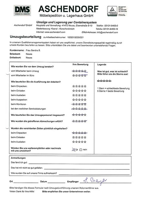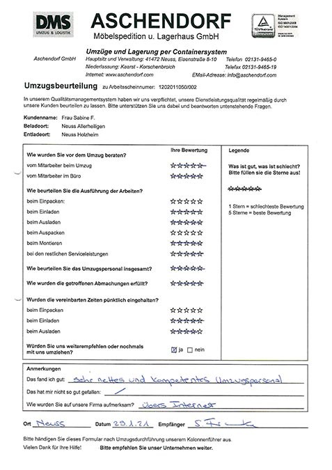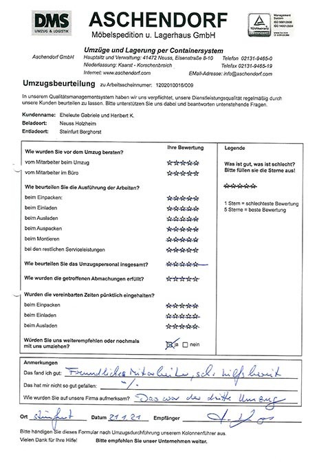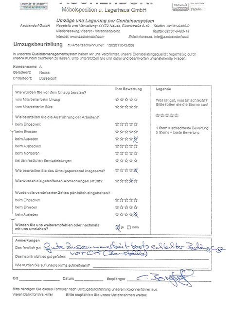 Wie beurteilen Sie das Umzugspersonal insgesamt?