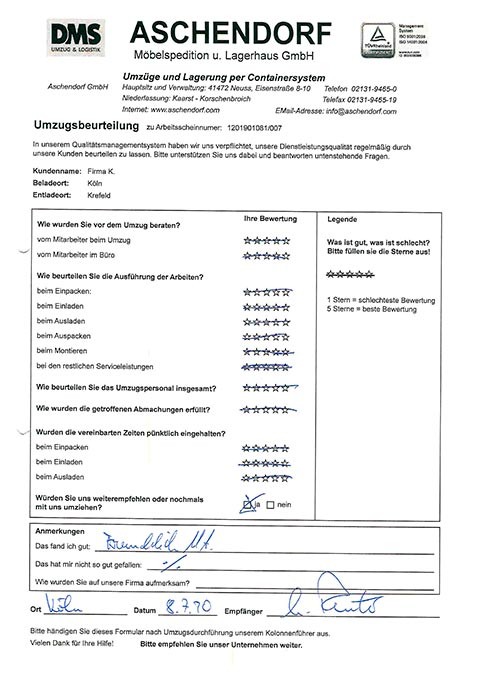 NeussGesamtwertung des Kunden