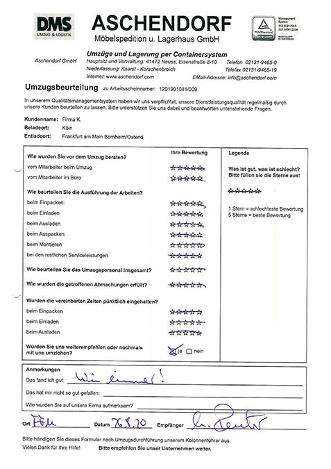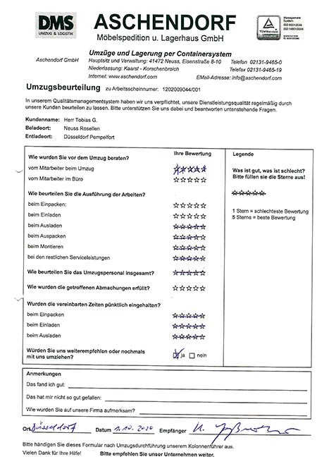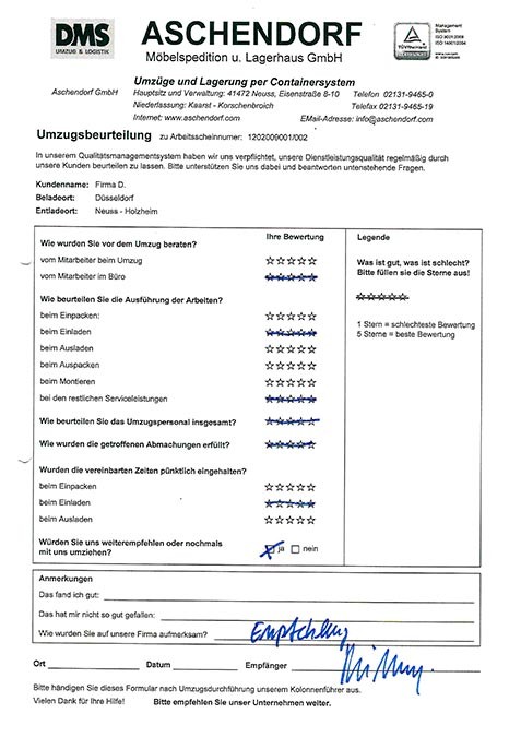 DüsseldorfGesamtwertung des Kunden