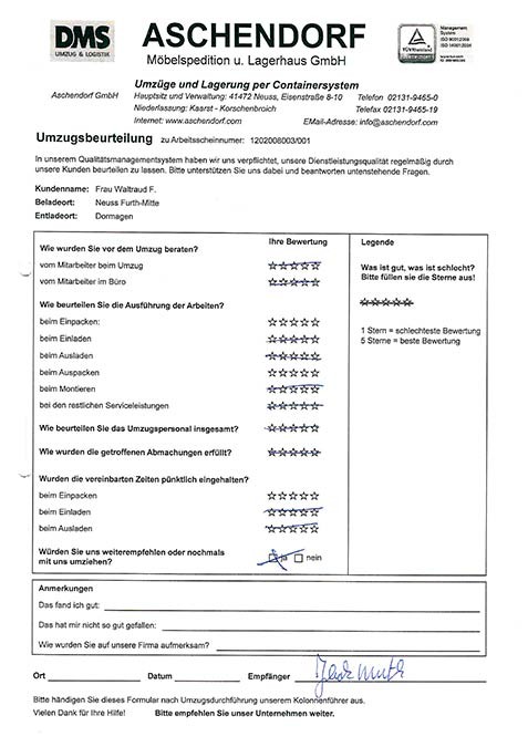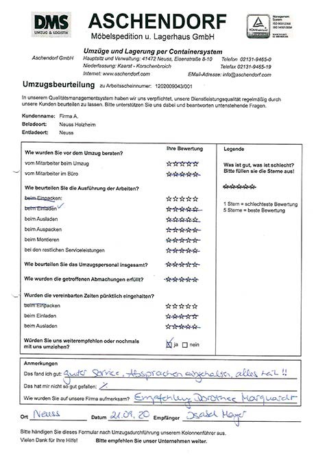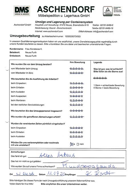 Wie beurteilen Sie das Umzugspersonal insgesamt?