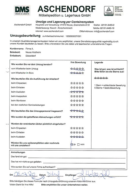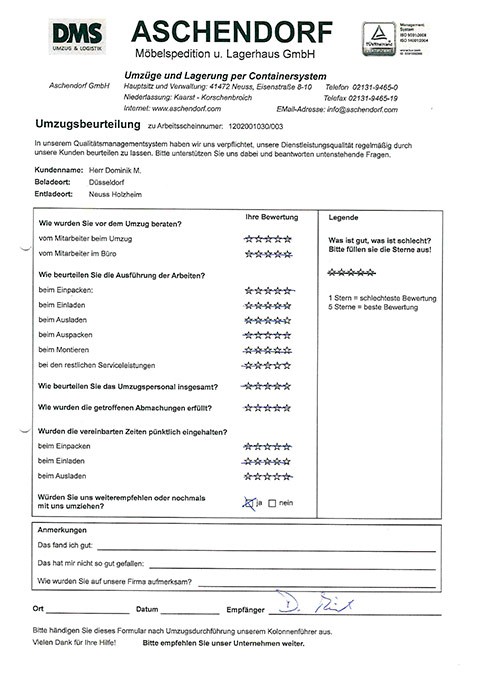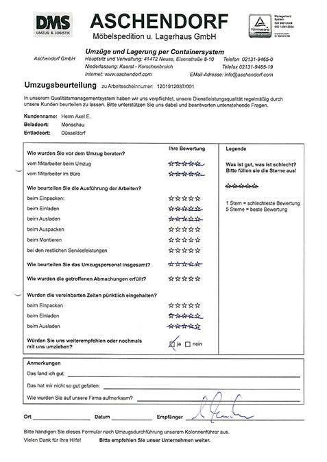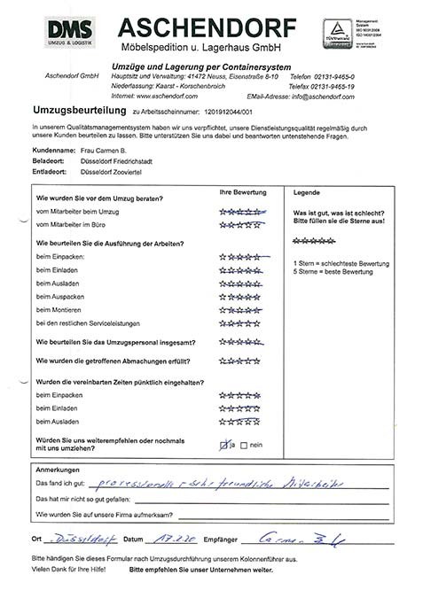 DüsseldorfGesamtwertung des Kunden