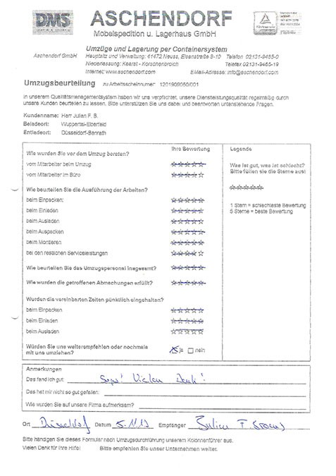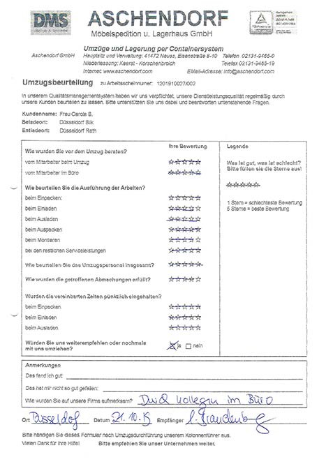 DüsseldorfGesamtwertung des Kunden
