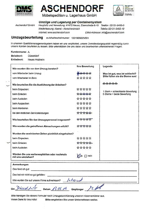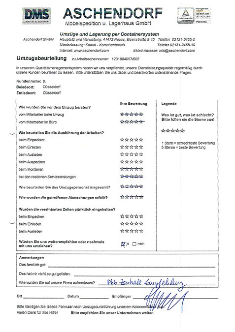 DüsseldorfGesamtwertung des Kunden