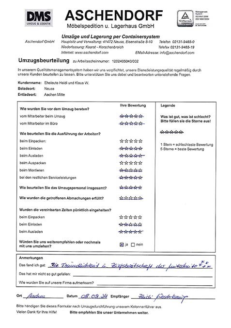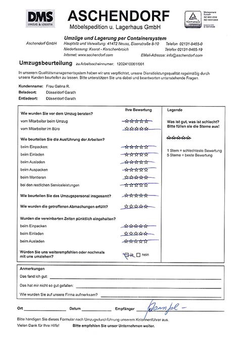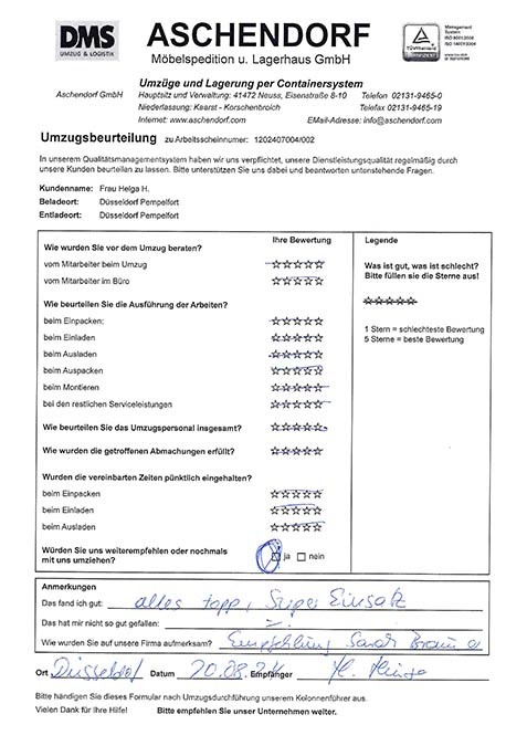 Wie beurteilen Sie das Umzugspersonal insgesamt?