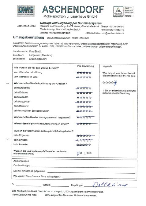 DüsseldorfGesamtwertung des Kunden