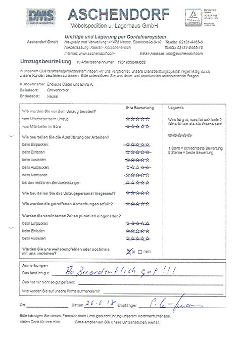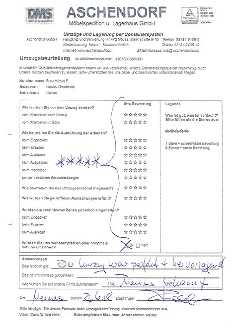 Die Mitarbeiter waren alles sehr freundlich und fleißig und alles hat reibungslos geklappt. Wir waren sehr froh, dass wir dieses Unternehmen beauftragt haben und können es nur weiterempfehlen!