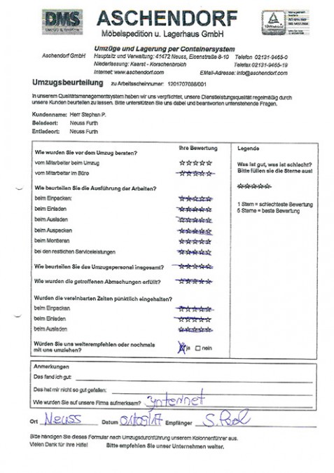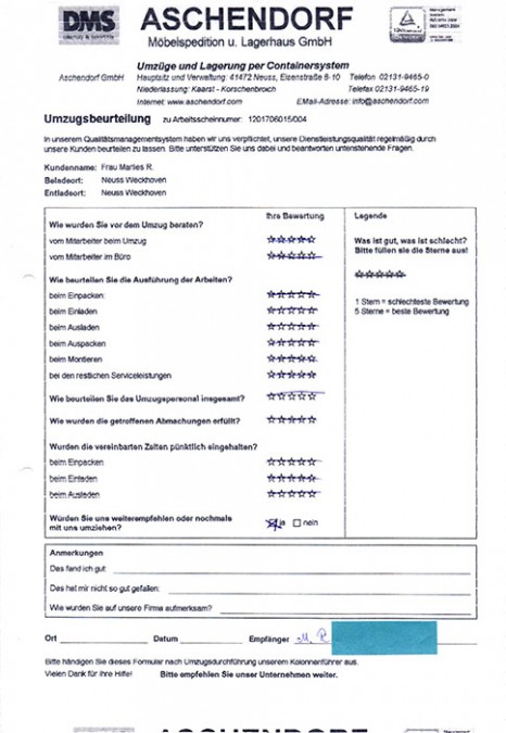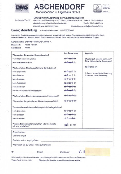 Wie beurteilen Sie das Umzugspersonal insgesamt?