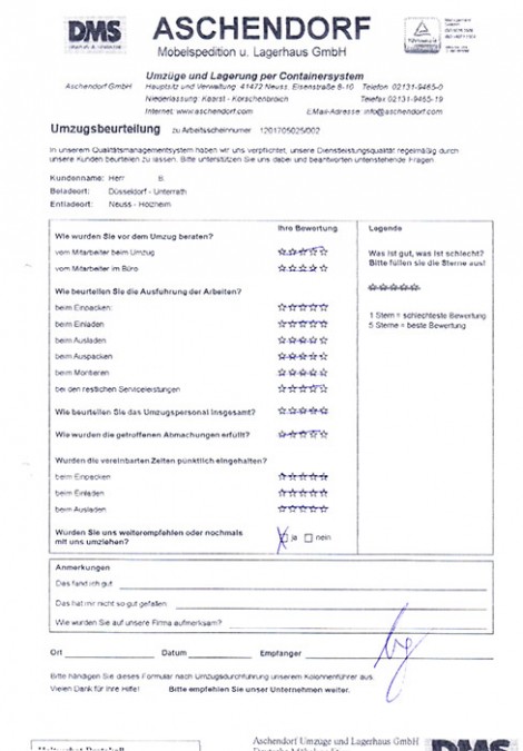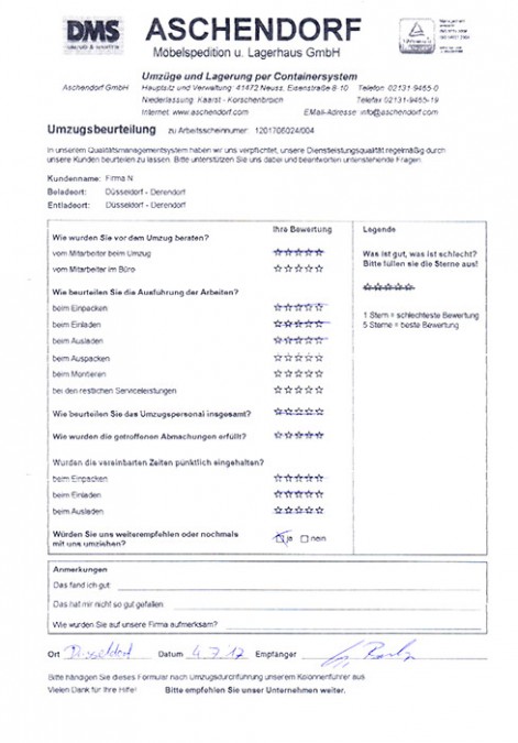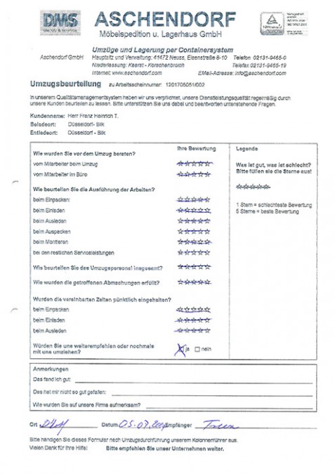 DüsseldorfGesamtwertung des Kunden