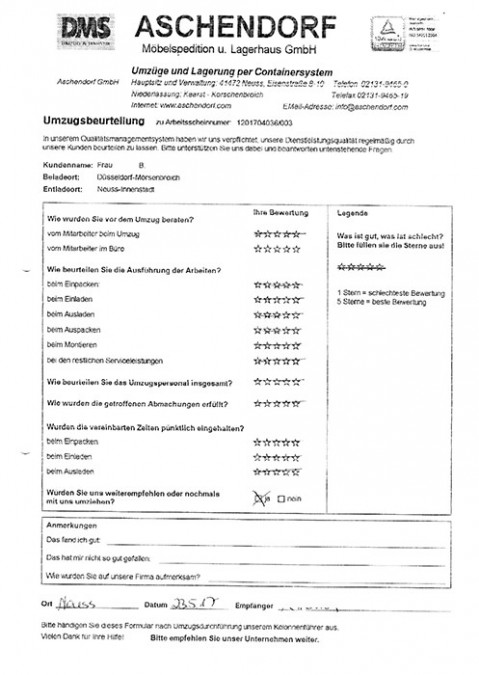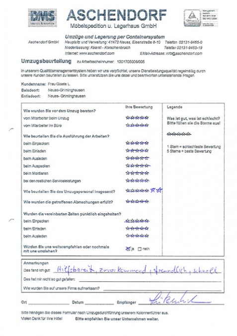 sehr professionell, gut eingespieltes Team! Ruhig aber effizient! Kenne das Unternehmen seit meiner Kindheit! Viele Grüße an Alexander Aschendorf! War alles super!!!