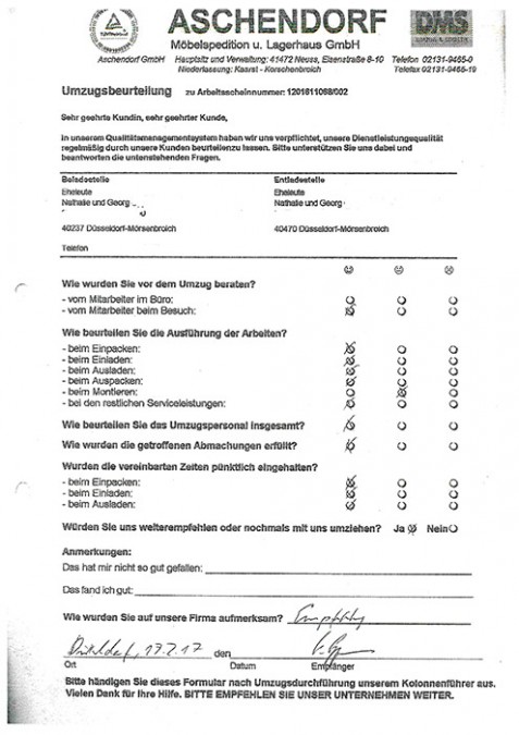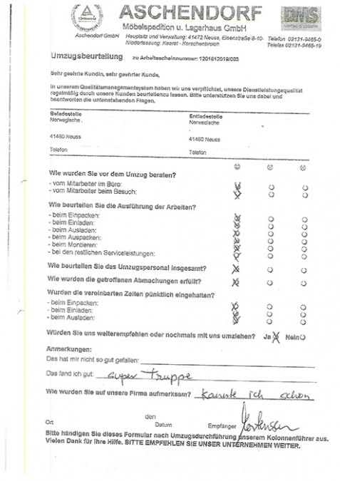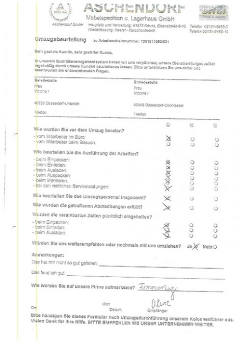 Wie beurteilen Sie das Umzugspersonal insgesamt?