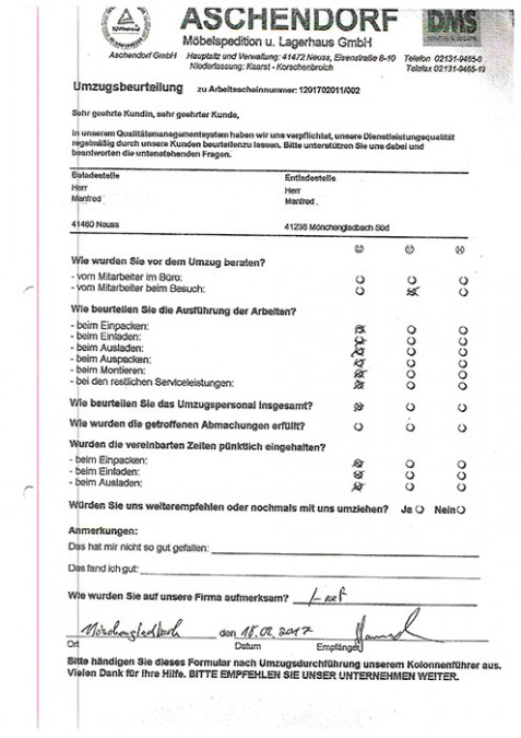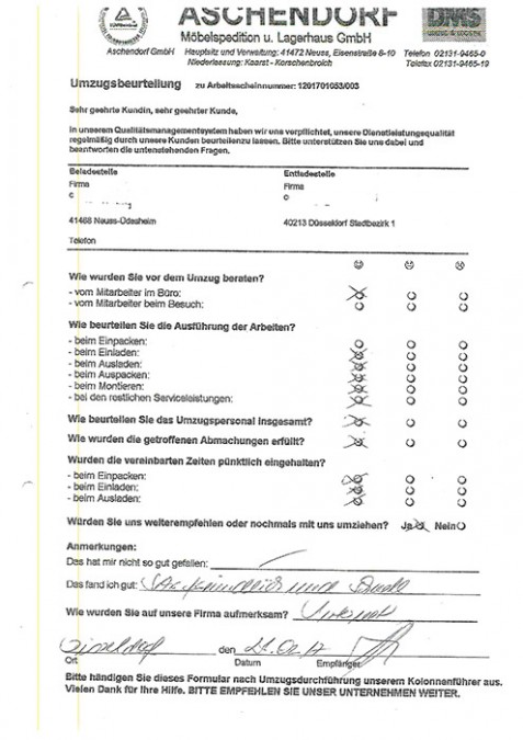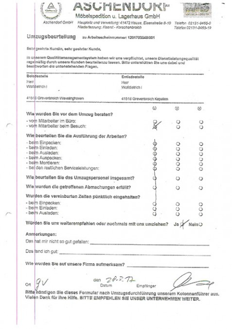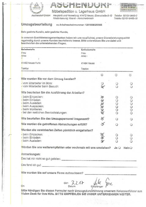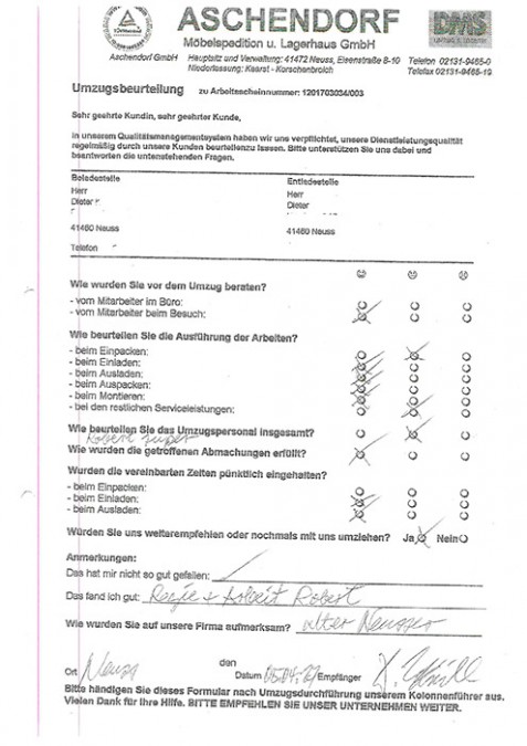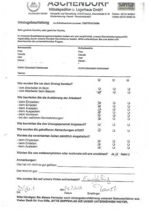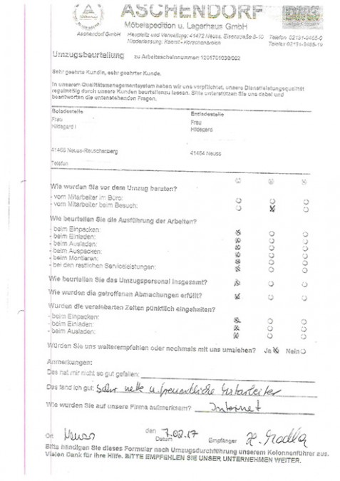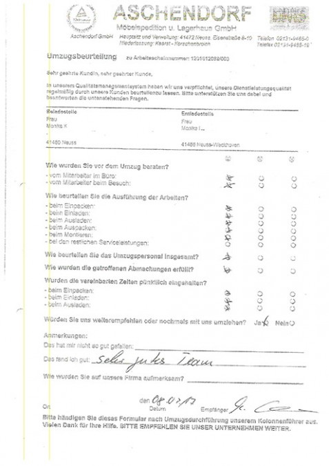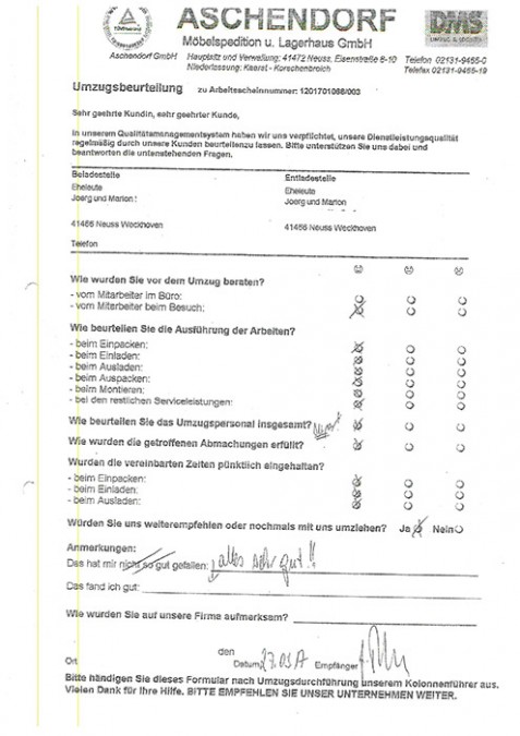 Mitarbeiter haben mitgedacht und alles wurde pfleglich behandelt