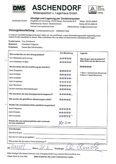 DüsseldorfGesamtwertung des Kunden